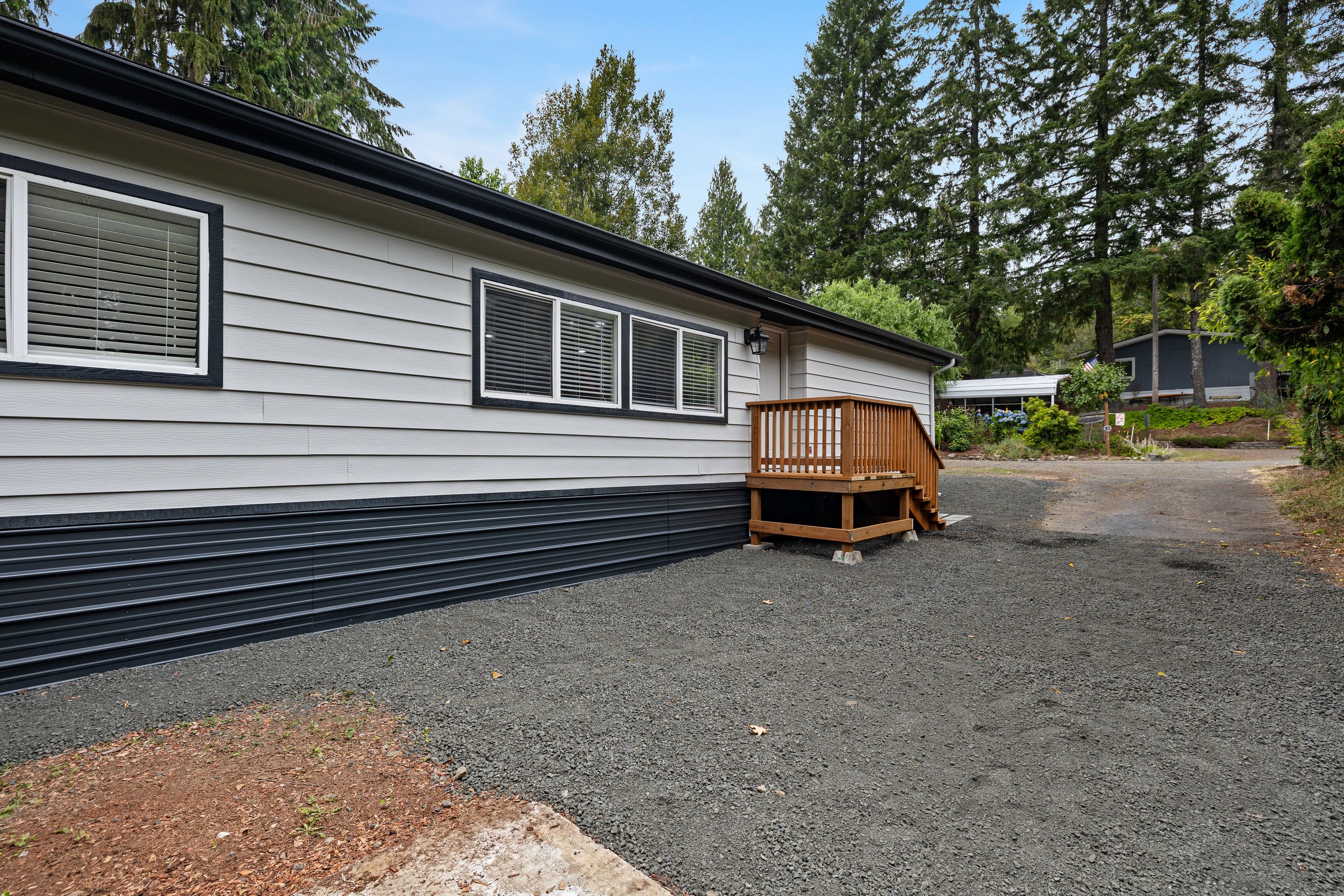 This beautifully remodeled 3-bedroom, 2-bath double-wide home is located in the highly sought-after Robin Hood Village, an all-age community nestled in a serene forested area above the Robin Hood Resort on Hood Canal. The extensive renovation features new flooring, interior/exterior paint, windows, kitchen, stainless steel appliances, bathrooms, baseboard heating, siding, drywall, plumbing, deck, and a new roof. This unit offers ample parking and exceptional privacy. The area is a haven for outdoor enthusiasts, with activities like sightseeing, kayaking, hiking, golfing, oyster picking, crabbing, clamming, fishing, and more. Lot rent is $625 per month. Welcome home!